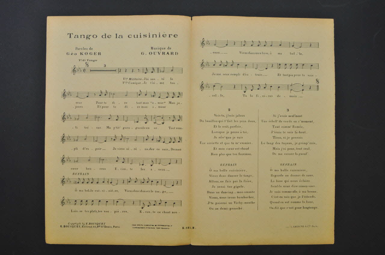 chanson, partition de musique, petit format, Tango de la cuisinière