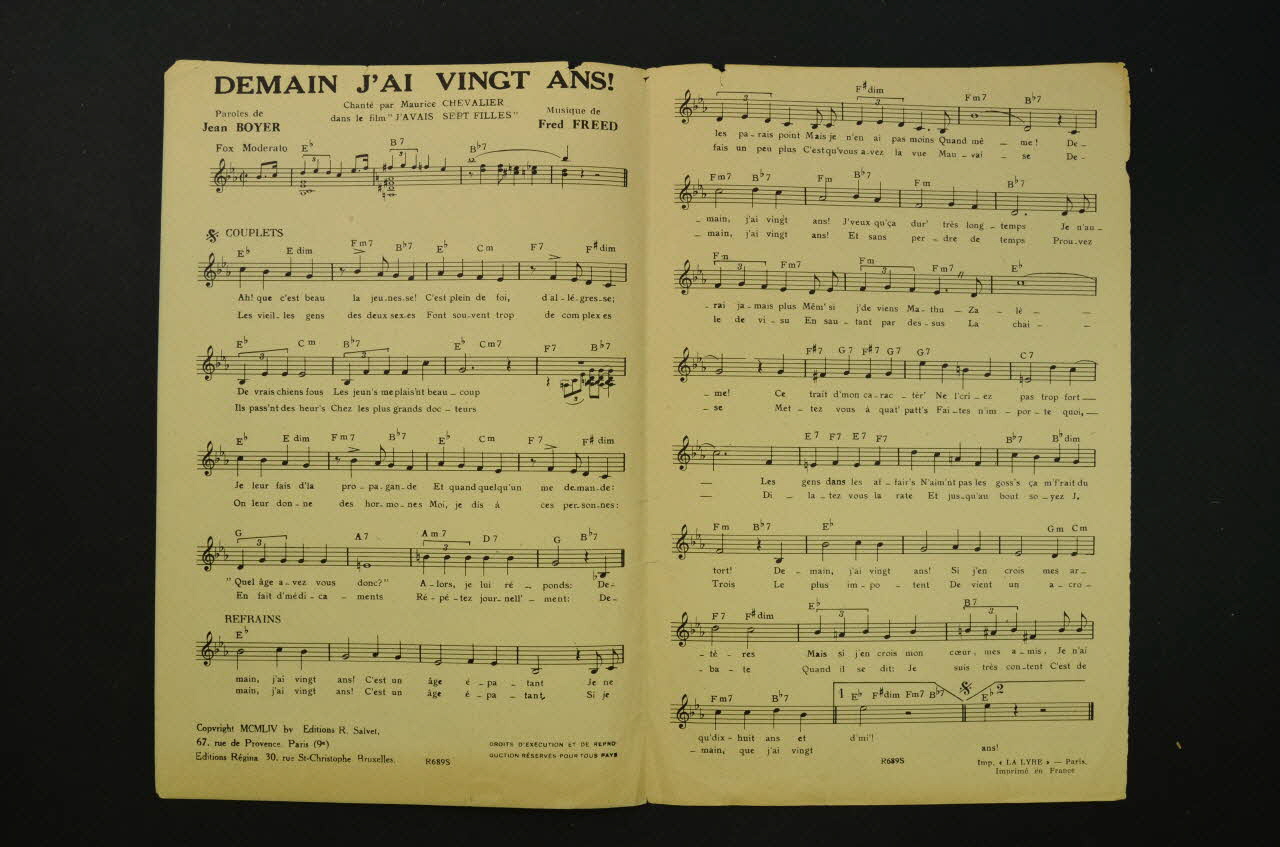 partition de musique, chanson, petit format, Demain j'ai vingt ans, J'avais sept filles
