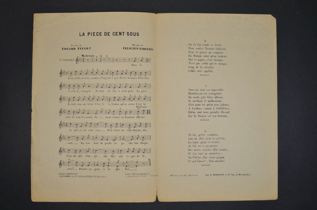 chanson, partition de musique, petit format, La pièce de cent sous