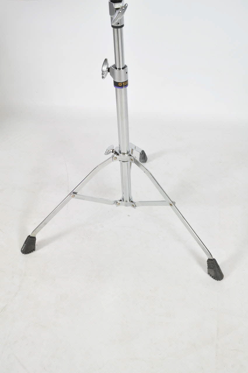 Porte cymbale à trois pieds. Les extrémités des pieds sont encadrées de pièces de caoutchouc moulées. Trois vis le long de la tige permettent de régler la hauteur, la position et l'inclinaison de la cymbale. Une pièce de feutre se trouve entre la vis de fixation et le dessus de la cymbale.Décor