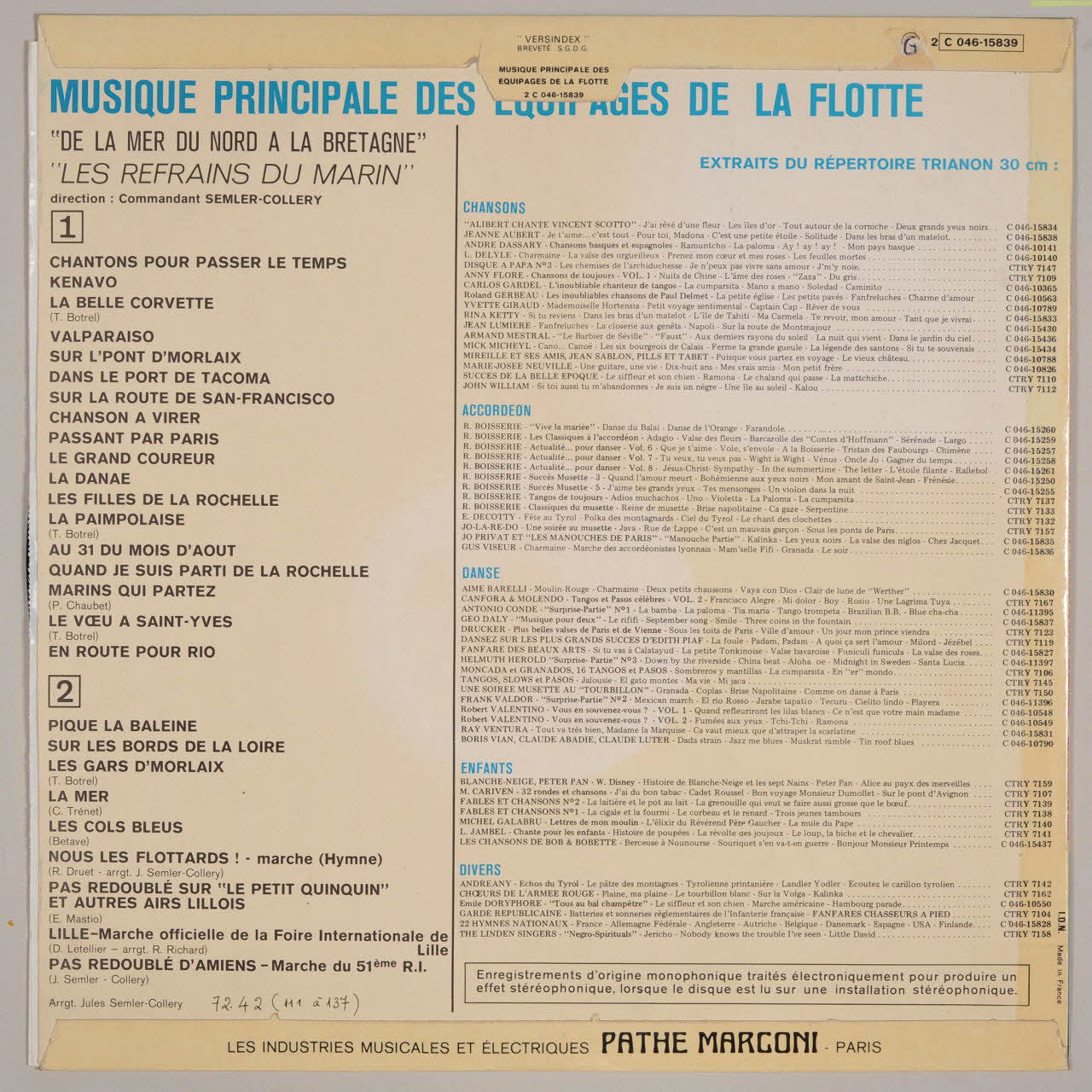 disque 33 tours, Les refrains du marin, De la mer du Nord à la Bretagne