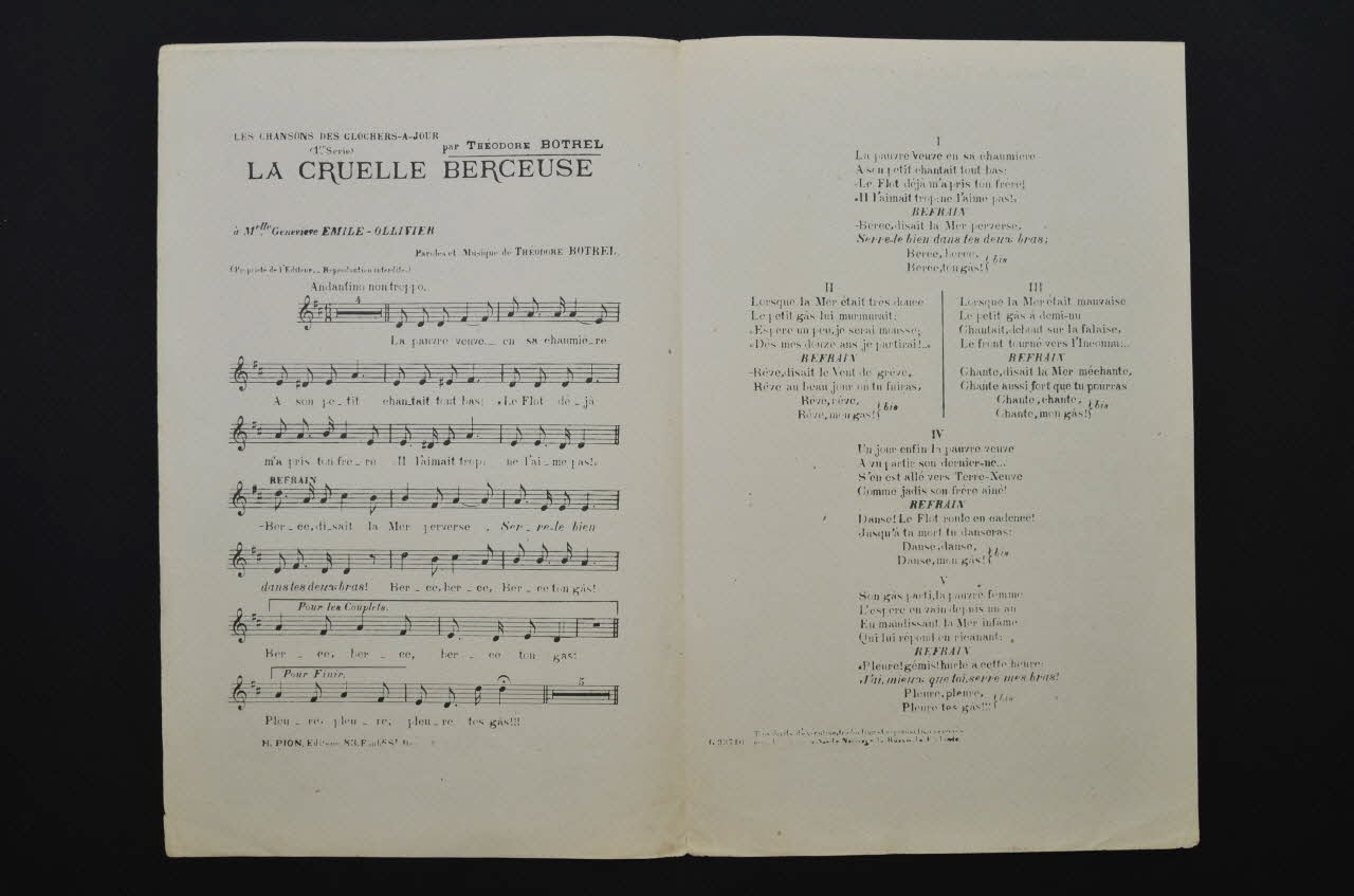 chanson, partition de musique, petit format, Cruelle berceuse