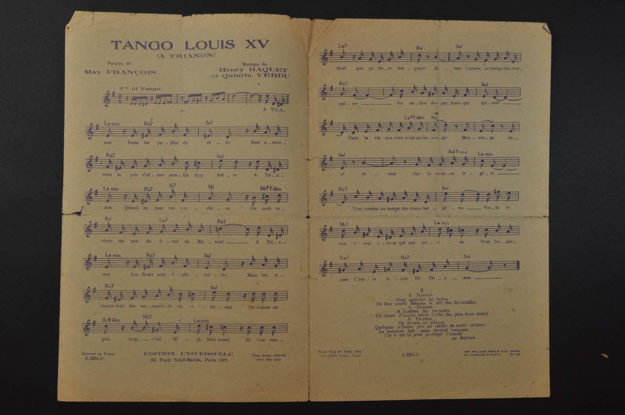 chanson, petit format, partition de musique, Tango Louis XV (à Trianon)
