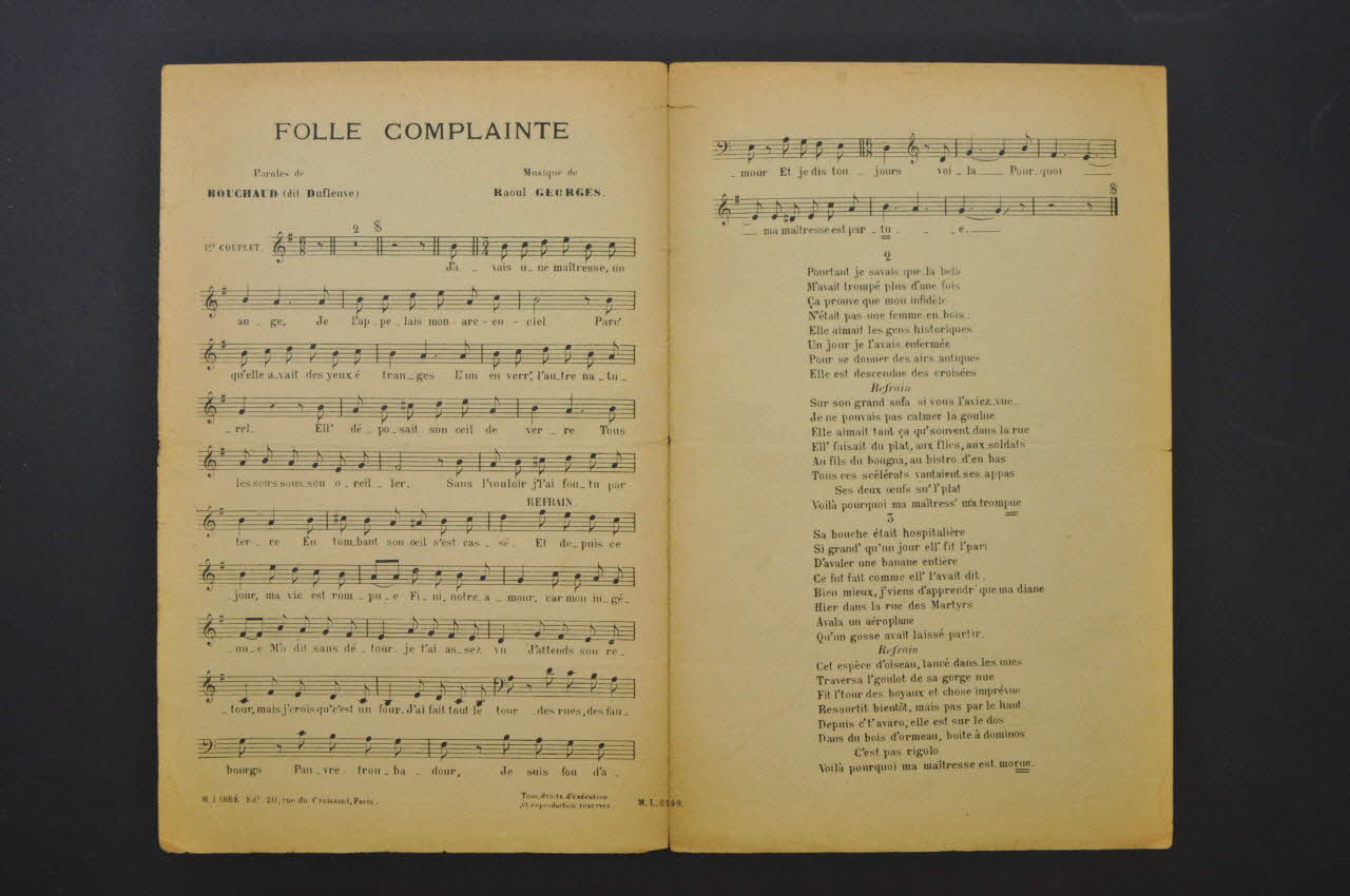 chanson, partition de musique, petit format, Folle complainte