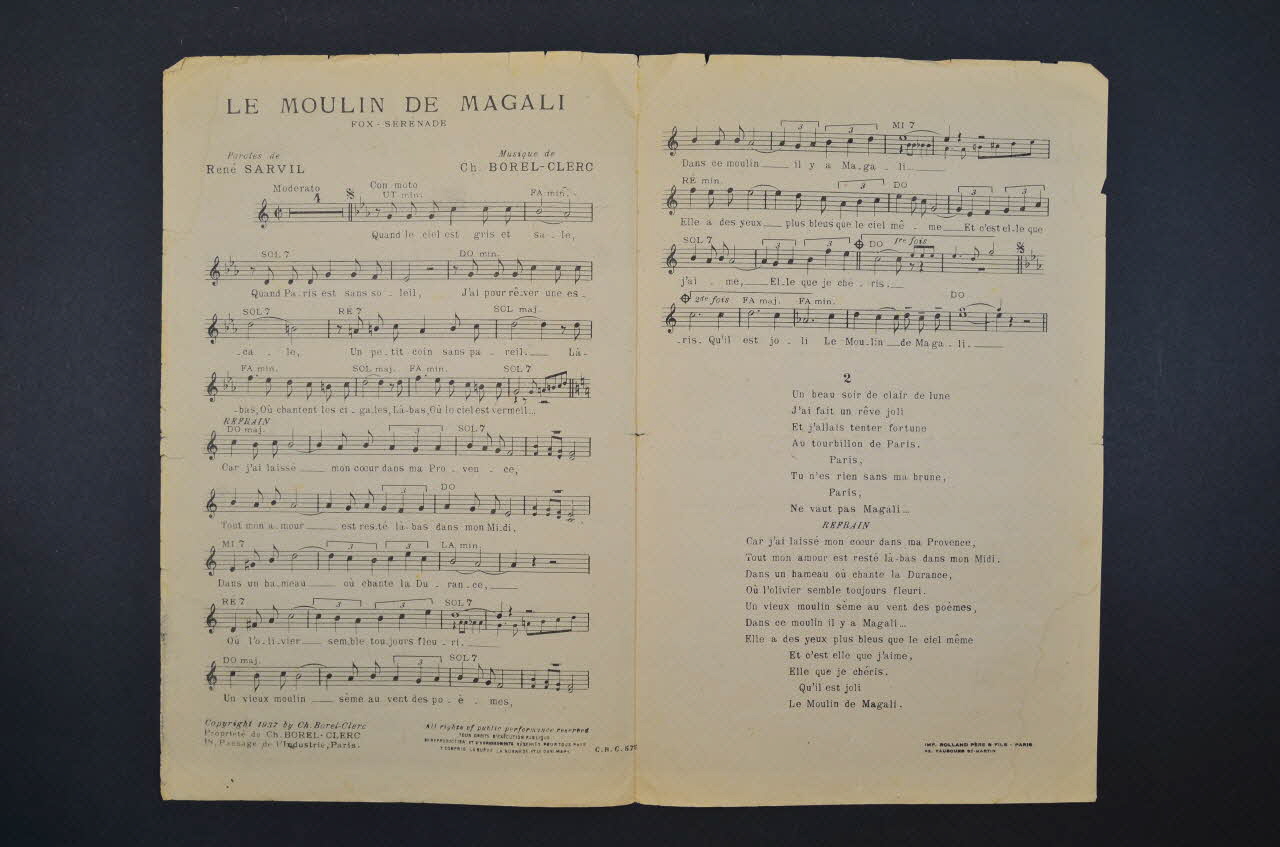 chanson, partition de musique, petit format, Le moulin de Magalie