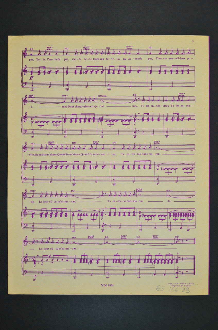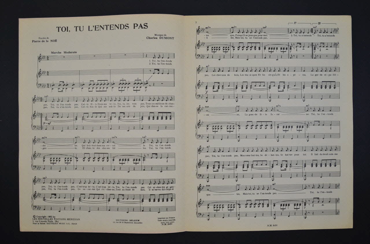chanson, partition de musique, petit format, Toi, tu l'entends pas