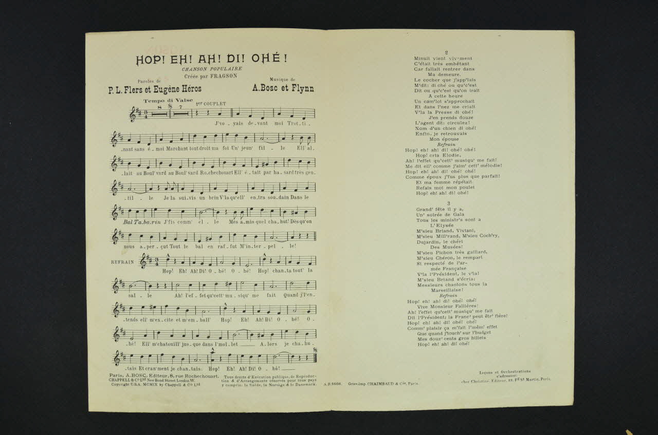 chanson, partition de musique, petit format, Hop ! eh ! ah ! di ! ohé !