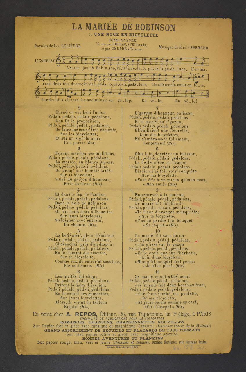chanson, partition de musique, petit format, La mariée de Robinson ou une noce en bicyclette