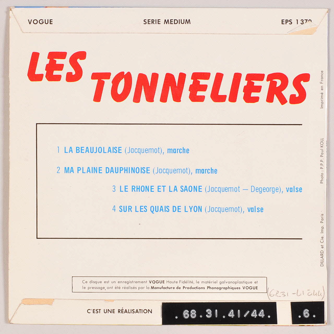 disque 45 tours, Le Rhône et la Saône, Ma plaine Dauphinoise, La Beaujolaise, Sur les quais de Lyon