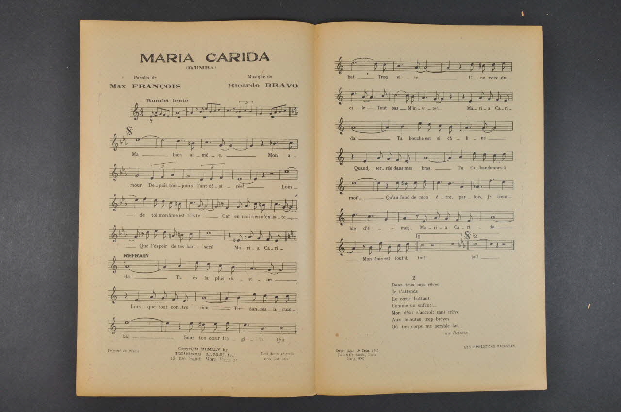 chanson, petit format, partition de musique, Maria Carida