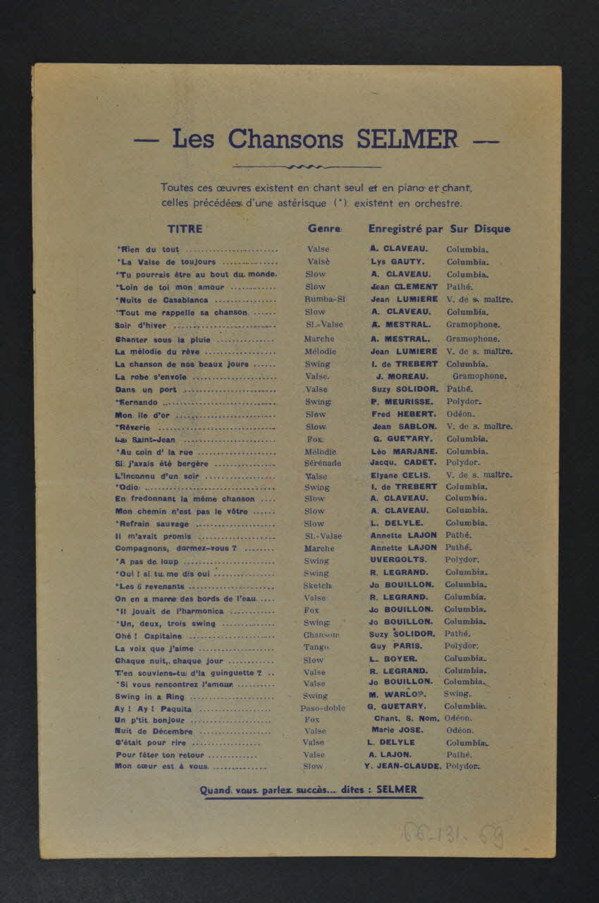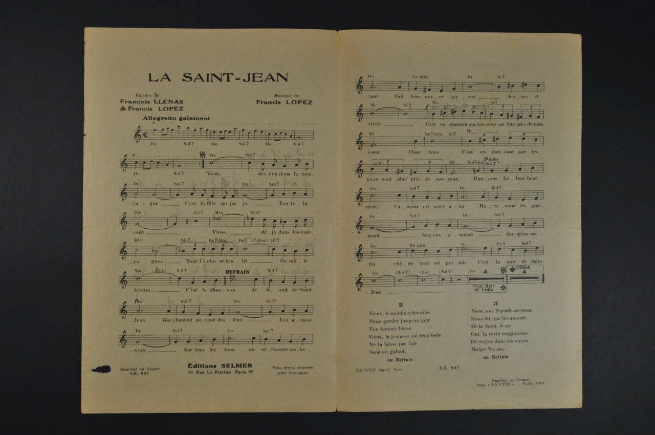 La première page présente la photographie de Georges Guétary. Les inscriptions précisent le titre de la chanson, l'auteur et l'éditeur. A l'intérieur se trouvent la partition et les paroles de la chanson. Au dos se trouve une liste des morceaux disponibles chez le même éditeur.Décor