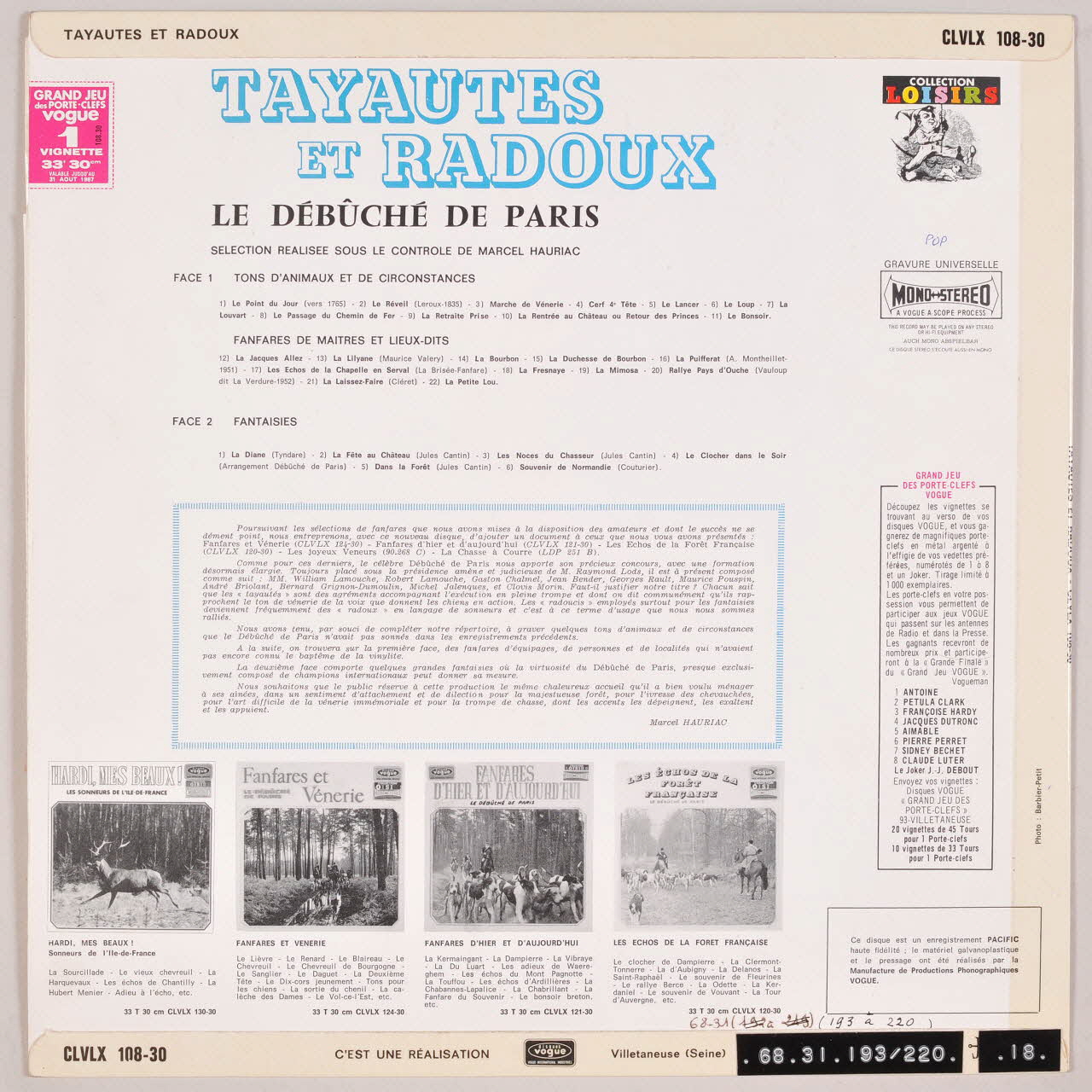 Une feuille accompagne le disque. Il présente, pour les 20 ans de Vogue, de nombreux disques de l'éditeur.