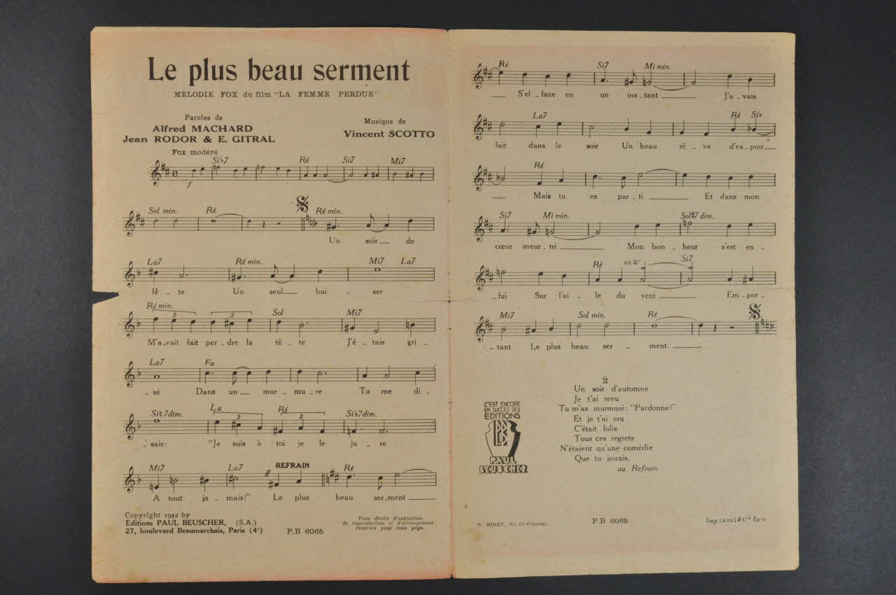 chanson, petit format, partition de musique, Les plus beaux serments, La femme perdue
