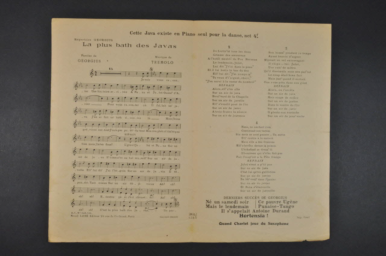 chanson, partition de musique, petit format, La plus bath des javas