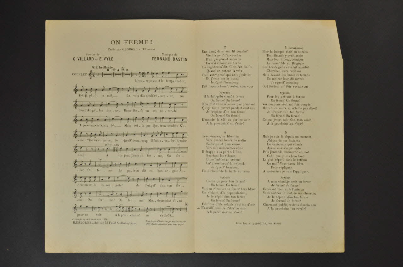 chanson, partition de musique, petit format, On ferme !
