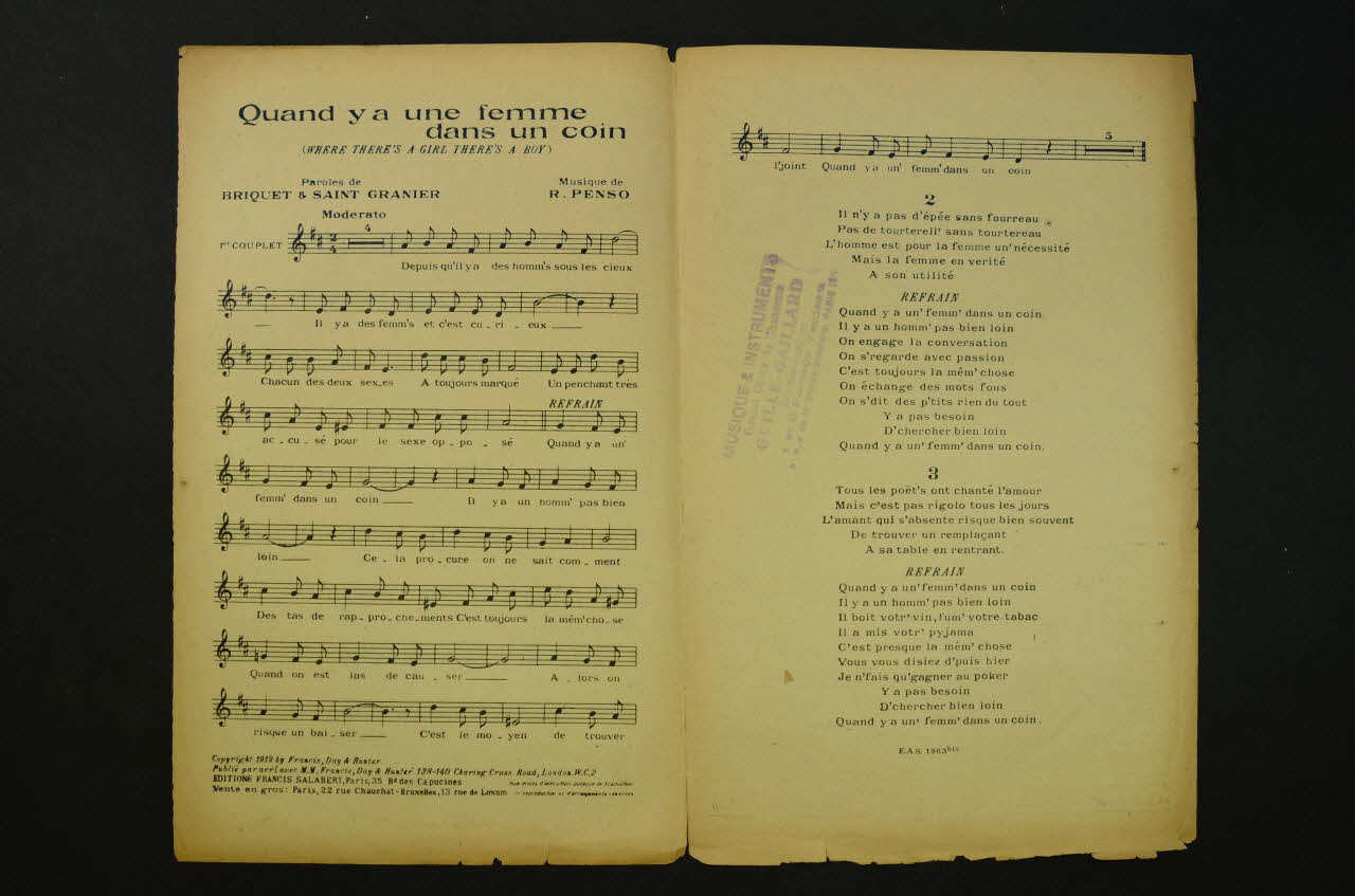 chanson, partition de musique, petit format, Quand ya une femme dans un coin