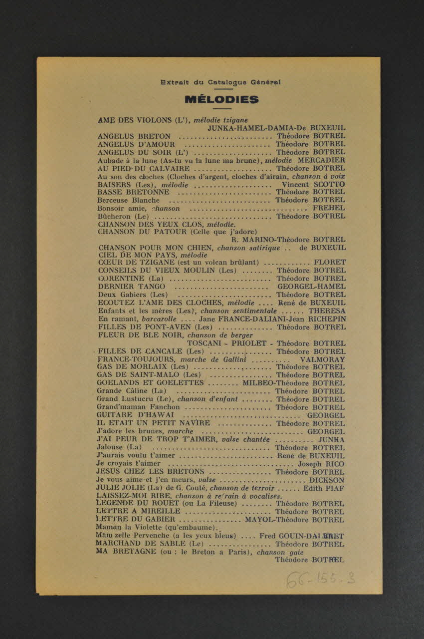 Les inscriptions renseignent le titre de la chanson, le nom des auteurs, de l'artiste et de l'éditeur. A l'intérieur, partitions et paroles de la chanson. Au dos, liste d?autres partitions publiées par l?éditeur.Décor
