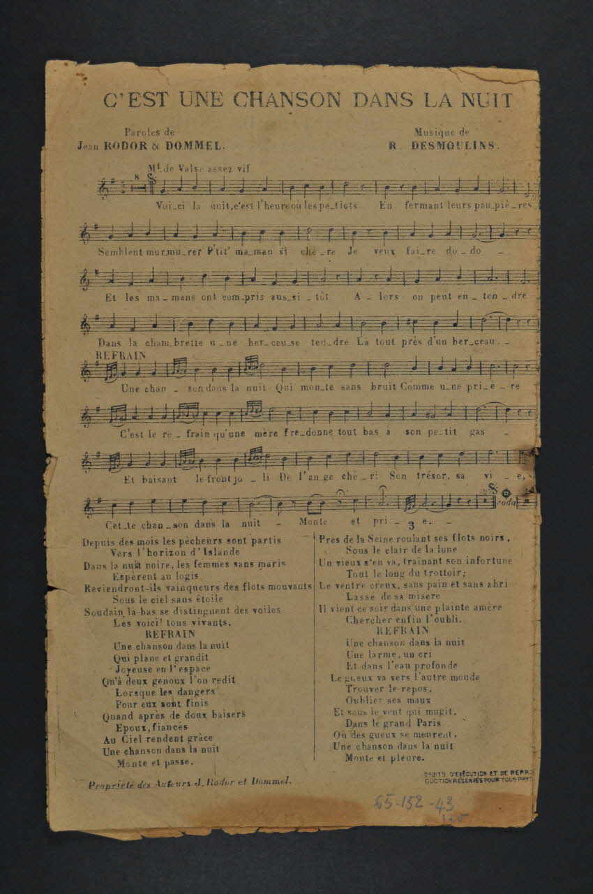 De : Lieu : France - Île-de-France - Parison m'a donné tout ça / Reviendrez vopus au nid / Si vous aimez celle que j'aime / Reviendrez vous au nid / Ma looulette / Chansons dans la rue // Si vous aimez celle que j'aime // On m'a donné tout ça // Le tourbillon du soir // C'est une chanson dans la nuit / Chansons dans la rue // C'est une chanson dans la nuit / Chansons dans la rue // Si vous aimez celle que j'aime // On m'a donné tout ça // C'est une chanson dans la nuit / le tourbillon du soir / Le tourbillon du soir / 49 Fbg St-Denis