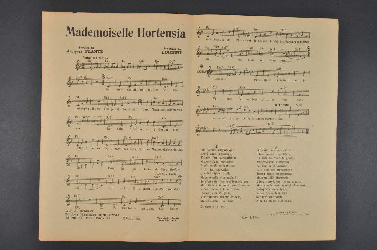 chanson, partition de musique, petit format, Mademoiselle Hortensia
