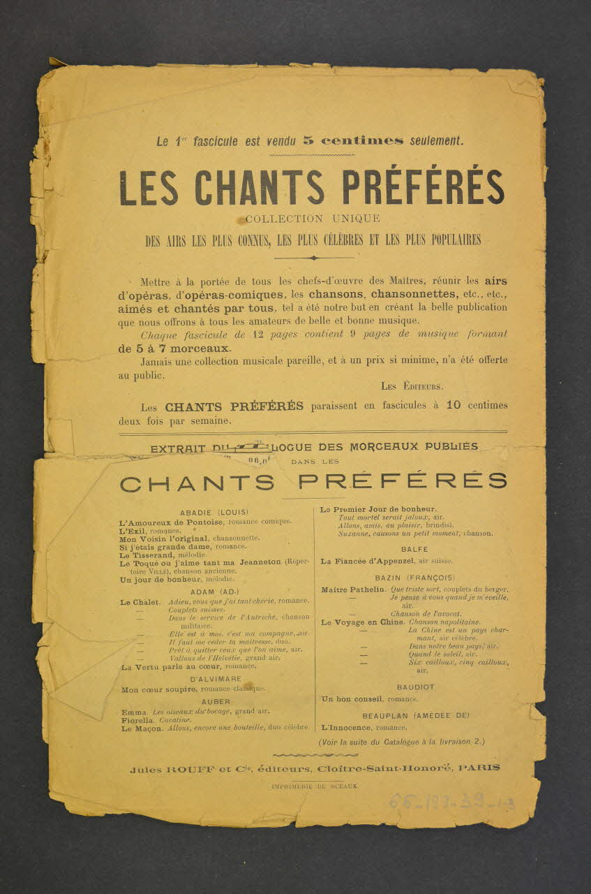 Les chants Préférés, collection unique des chants et chansons et des airs les plus connus. Le Maître Pathelin est un opéra comique de F. Bazin.