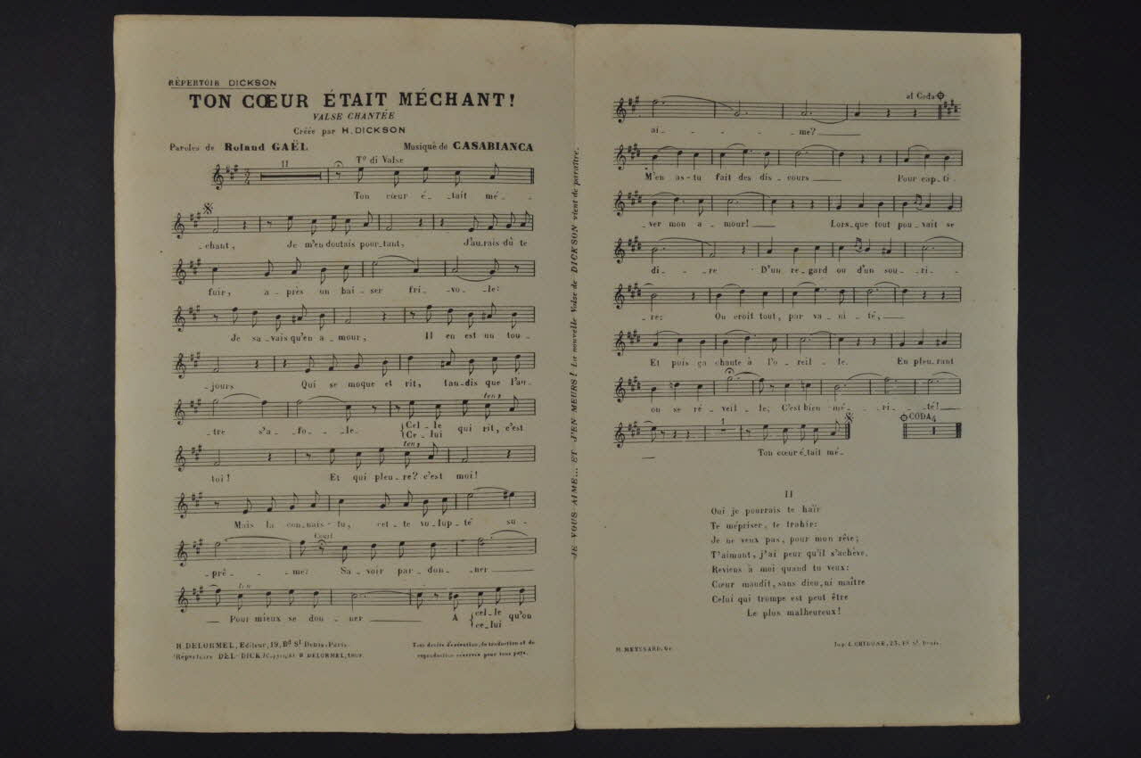 chanson, partition de musique, petit format, Ton coeur était méchant