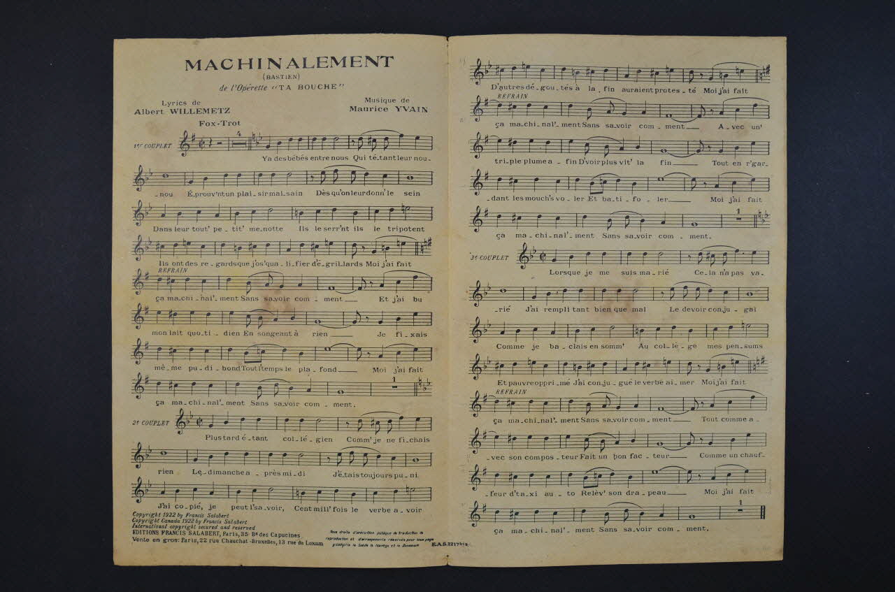 chanson, partition de musique, petit format, Machinalement, Ta bouche