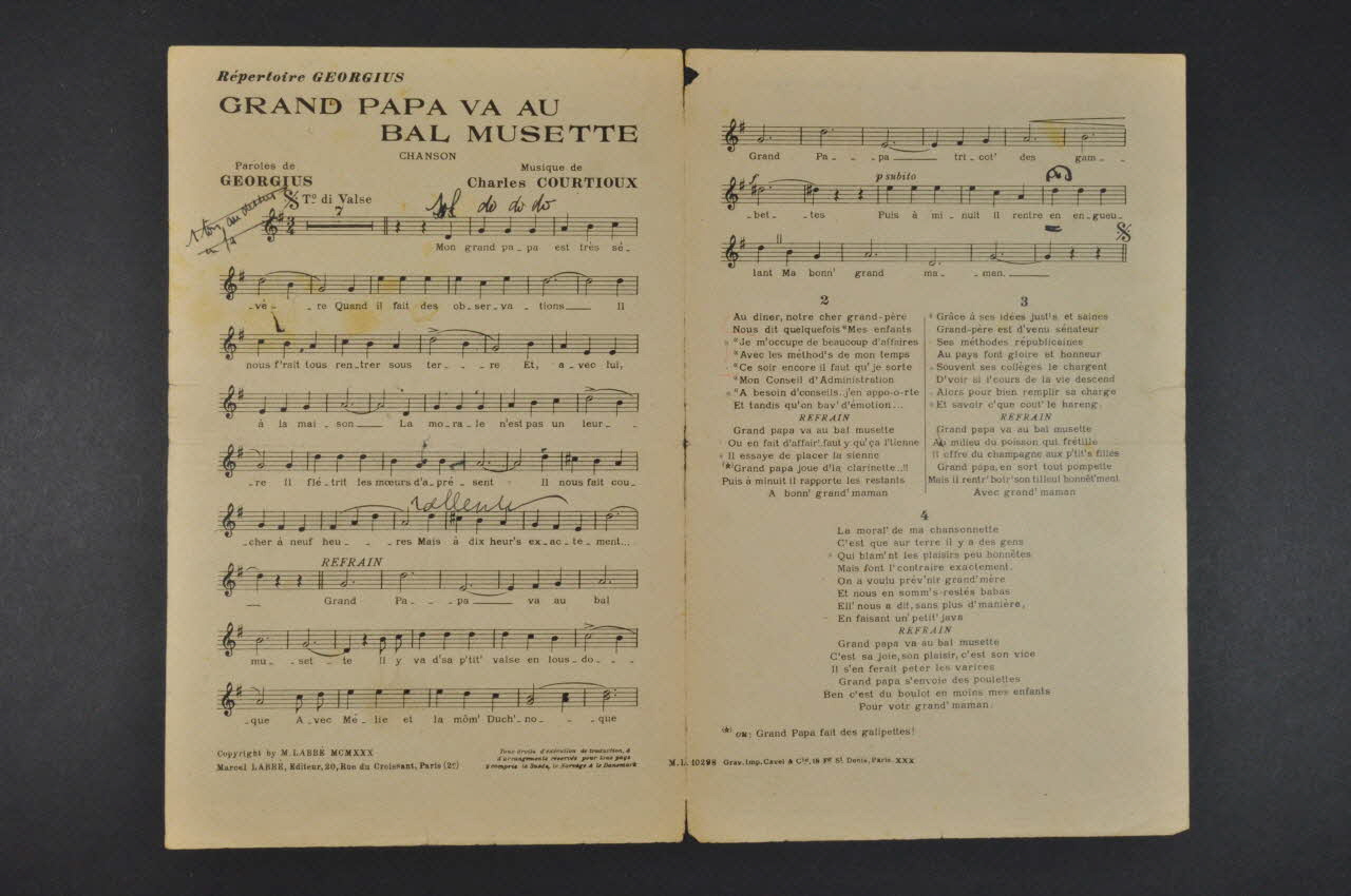Des inscriptions renseignent le titre, les auteurs, les exécutants et l'éditeur.
