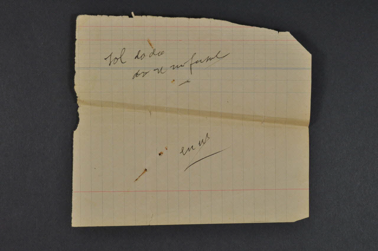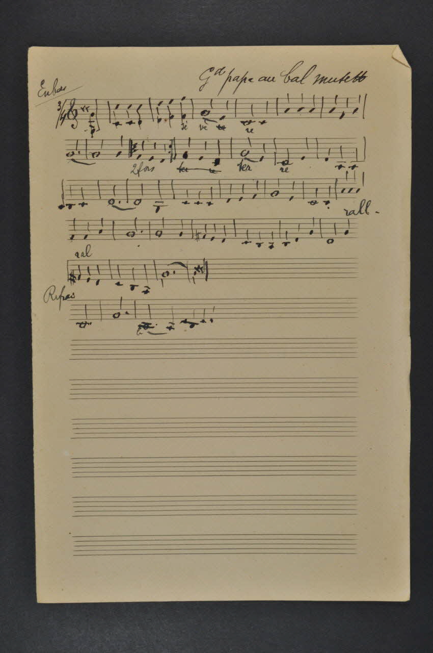 La partition est accompagnée d'une feuille contenant six lignes de partitions manuscrites et une feuille avec une inscription manuscrite "sol do do", la suite est illisible.