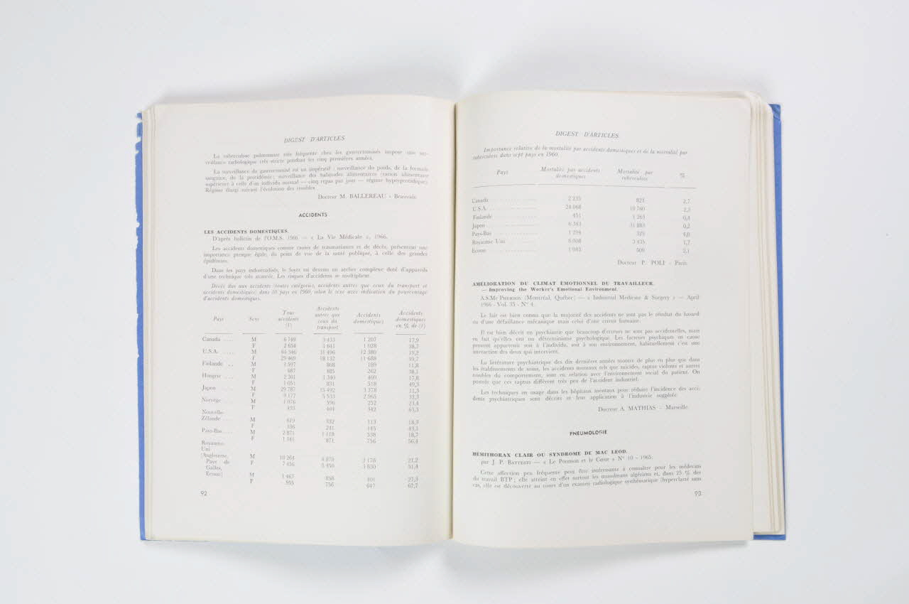 Exemplaire du Bulletin du Groupement National d'Etude des Médecins du Bâtiment et des Travaux Publics, revue de format rectangulaire, de deux-cent pages en papier blanc, reliées sous une couverture en papier cartonné bleu. La couverture présente le titre, dans un cadre noir.