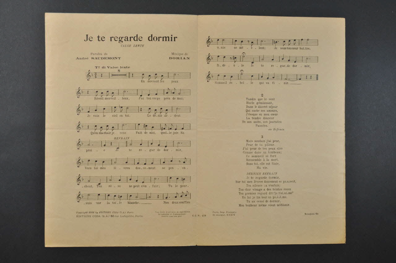 chanson, partition de musique, petit format, Je te regarde dormir