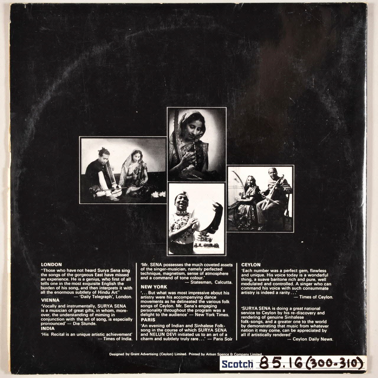 La pochette présente un dessin photographique du chanteur Surya Sena en bleu sur fond noir.