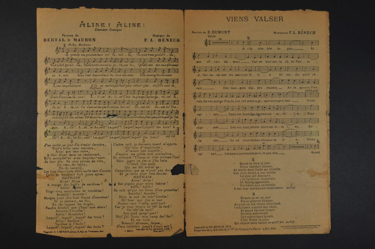 chanson, partition de musique, petit format, Mam'zelle Muguette, Lettre à Manon, Aline! Aline!, La passagère, Ferme la porte, Le tango de la danseuse, Viens valser