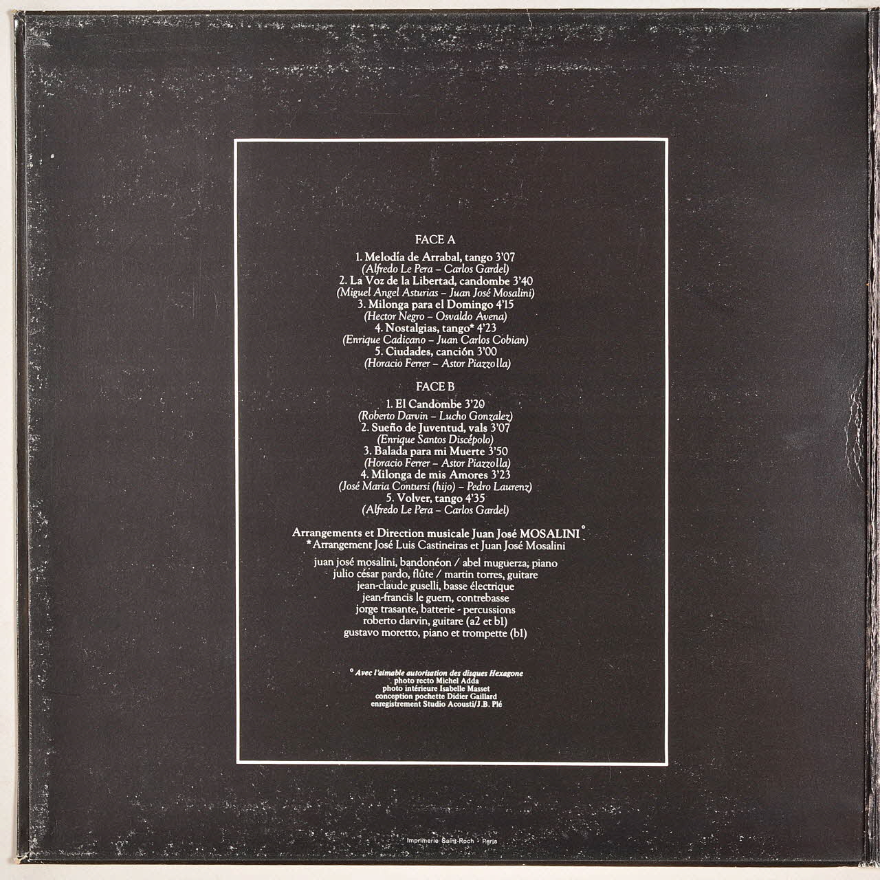 disque 33 tours, Nostalgias, Milonga de mis amores, Melodia de Arrabal, Ciudades, Sueno de Juventud, Tango, Volver, El Candombe, La voz de la libertad, Balada para mi Muerte, Milonga par el Domingo