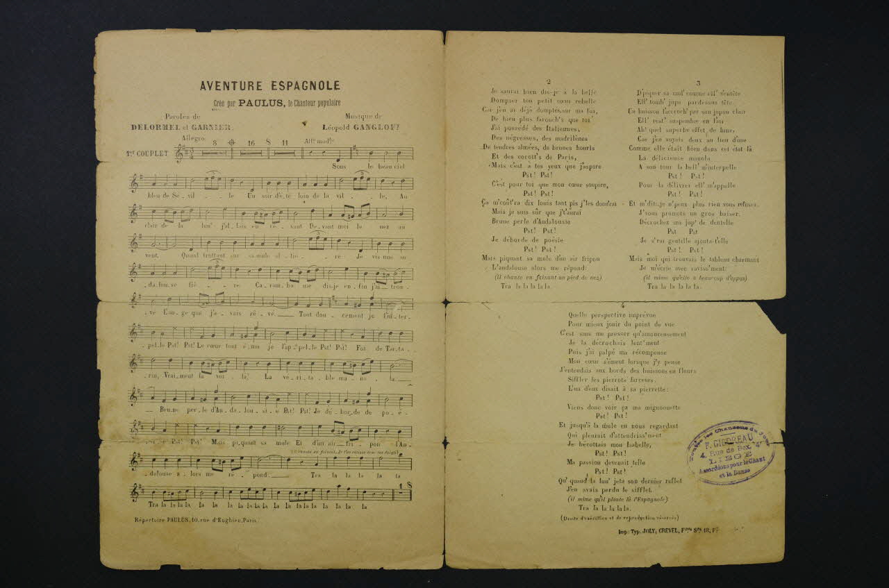 chanson, petit format, partition de musique, Aventure espagnole