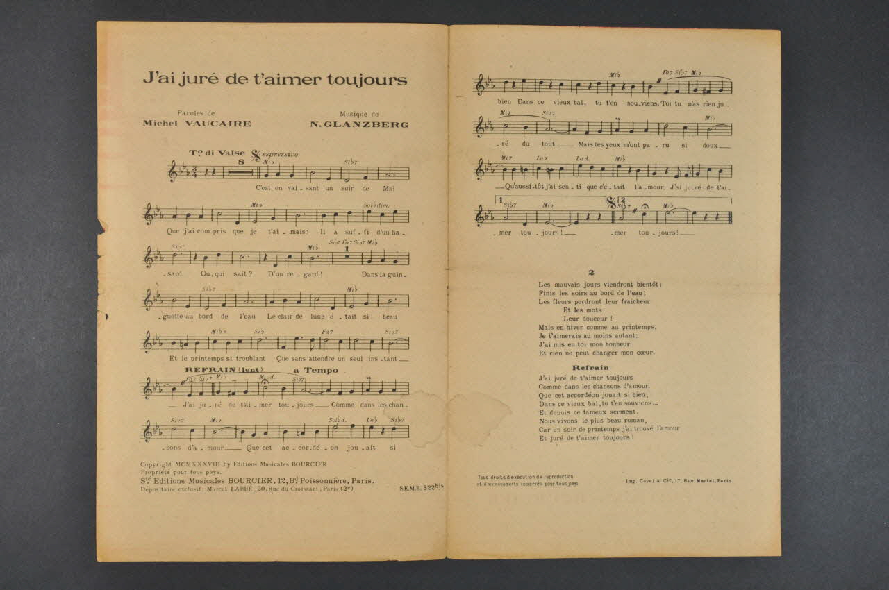 chanson, partition de musique, petit format, J'ai juré de t'aimer toujours