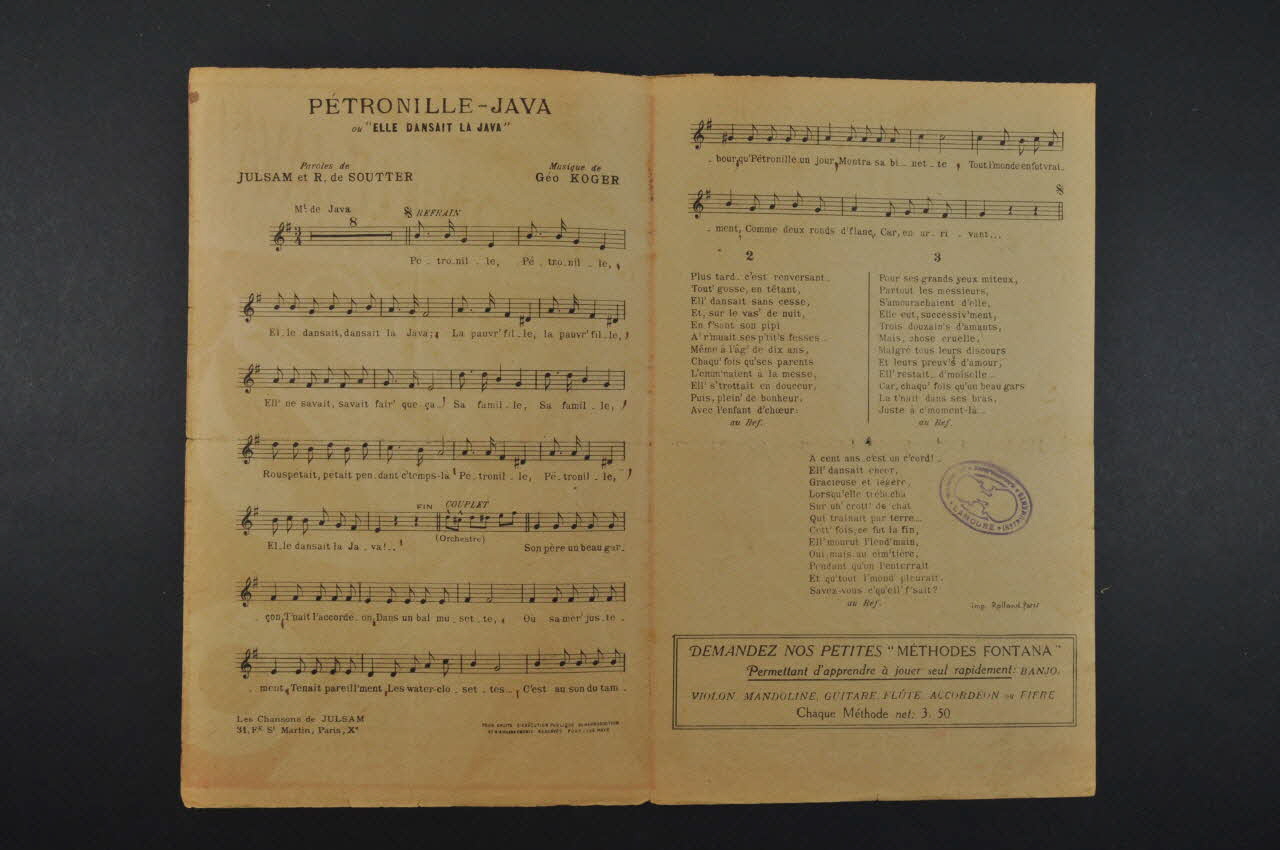 chanson, petit format, partition de musique, Pétronille - java !