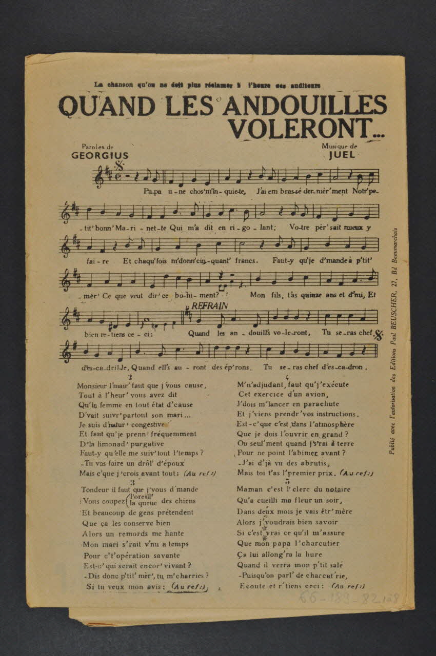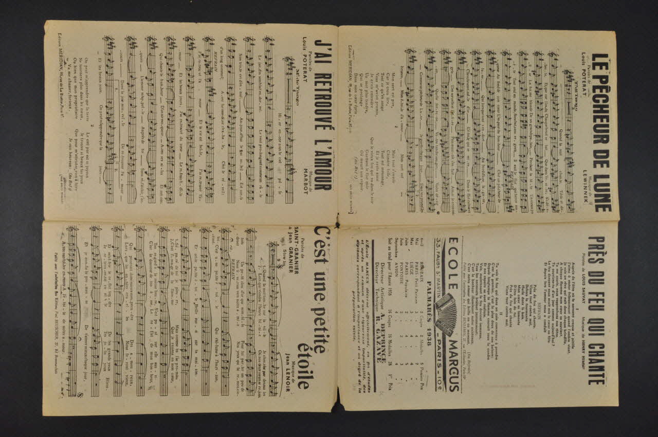 chanson, partition de musique, petit format, Le pêcheur de lune, Tu y as pris goût, La mise en bouteille, C'est une petite étoile, Ya l'feu chez Adèle, J'ai retrouvé l'amour, Près du feu qui chante, Quand les andouilles voleront