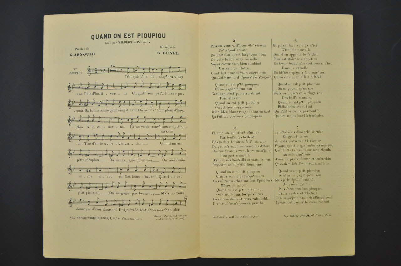 chanson, petit format, partition de musique, Quand on est pioupiou !