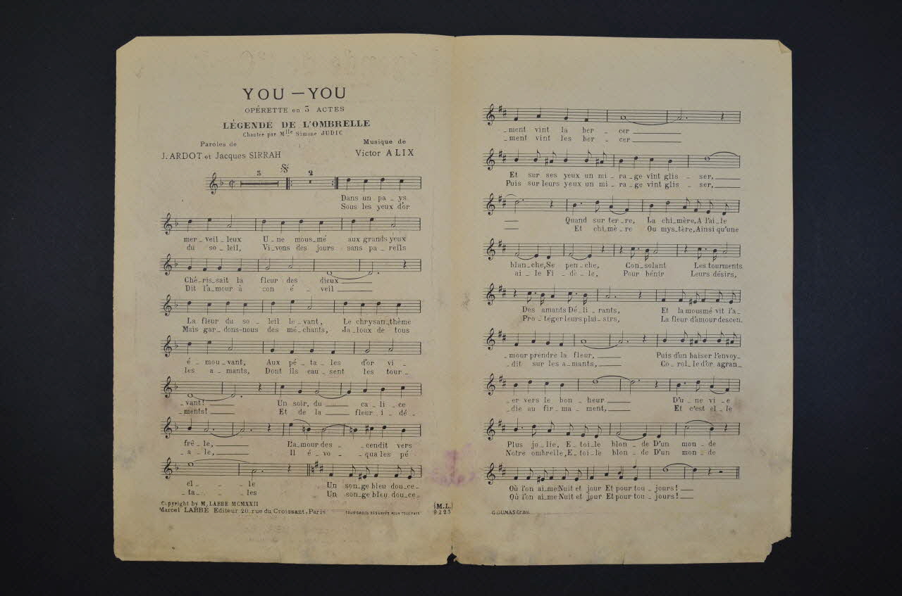 chanson, partition de musique, petit format, Légende de l'ombrelle, You You