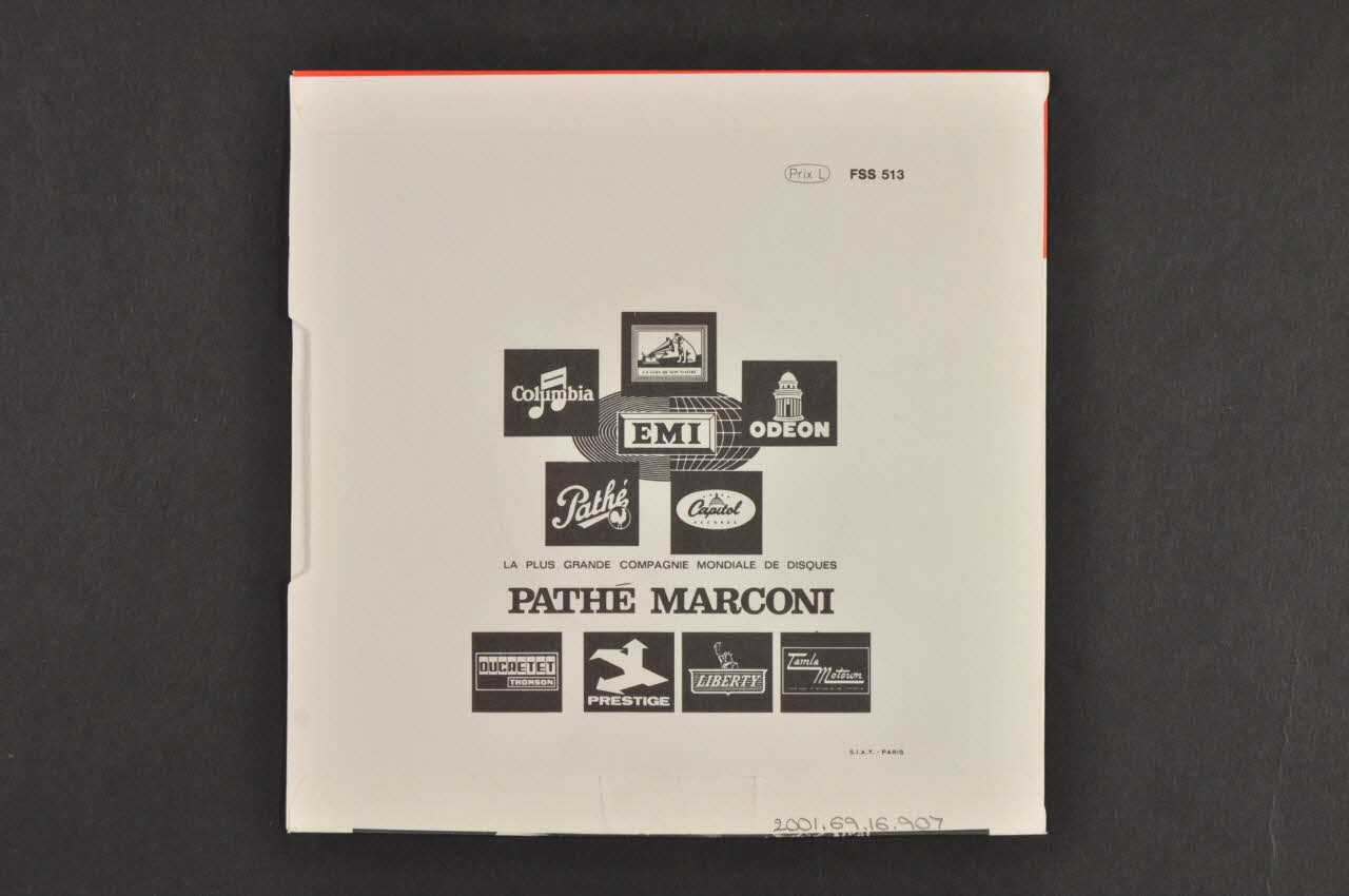 Le recto comporte le nom de l'artiste, le logo de l'éditeur et le titre des chansons sur fond rouge en haut. En-dessous, une photographie noir et blanc représente le portrait d'un homme. Le verso contient des logos de maisons d'édition en noir et blanc regroupés au centre, sur fond blanc.Matériaux et techniques