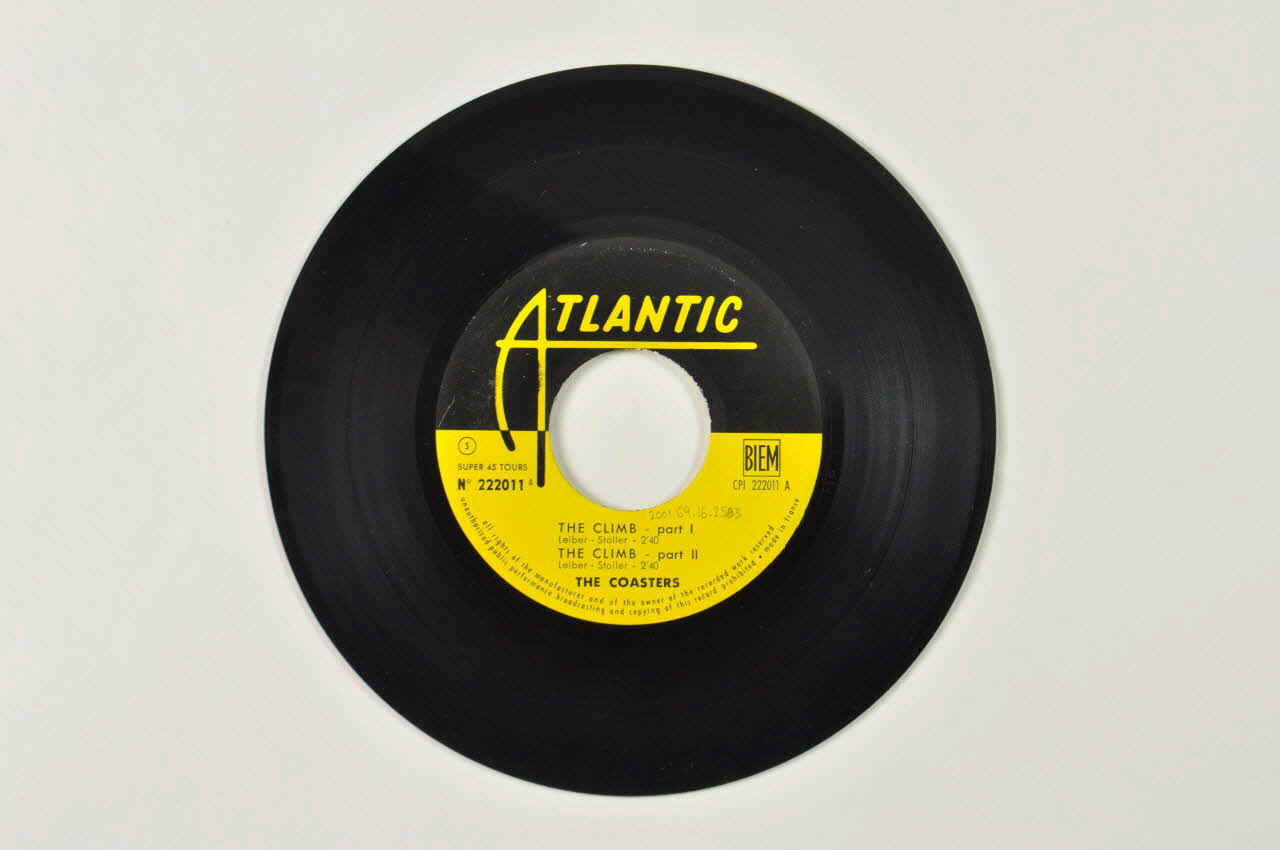 Le disque rond et noir comporte une perforation circulaire au centre. Une étiquette jaune et noire contenant le nom du chanteur, le titre des chansons, le logo de l'éditeur ainsi que d'autres inscriptions en jaune et noir est collée au centre.Matériaux et techniques