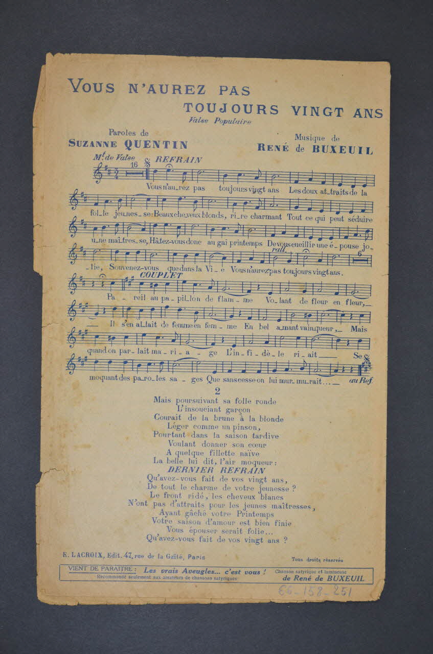 De : Lieu : France - Île-de-France - ParisVous n'aurez pas toujours vingt ans // J'ai tout donné pour toi / Vous n'aurez pas toujours vingt ans / J'ai tout donné pour toi / J'ai tout donné pour toi