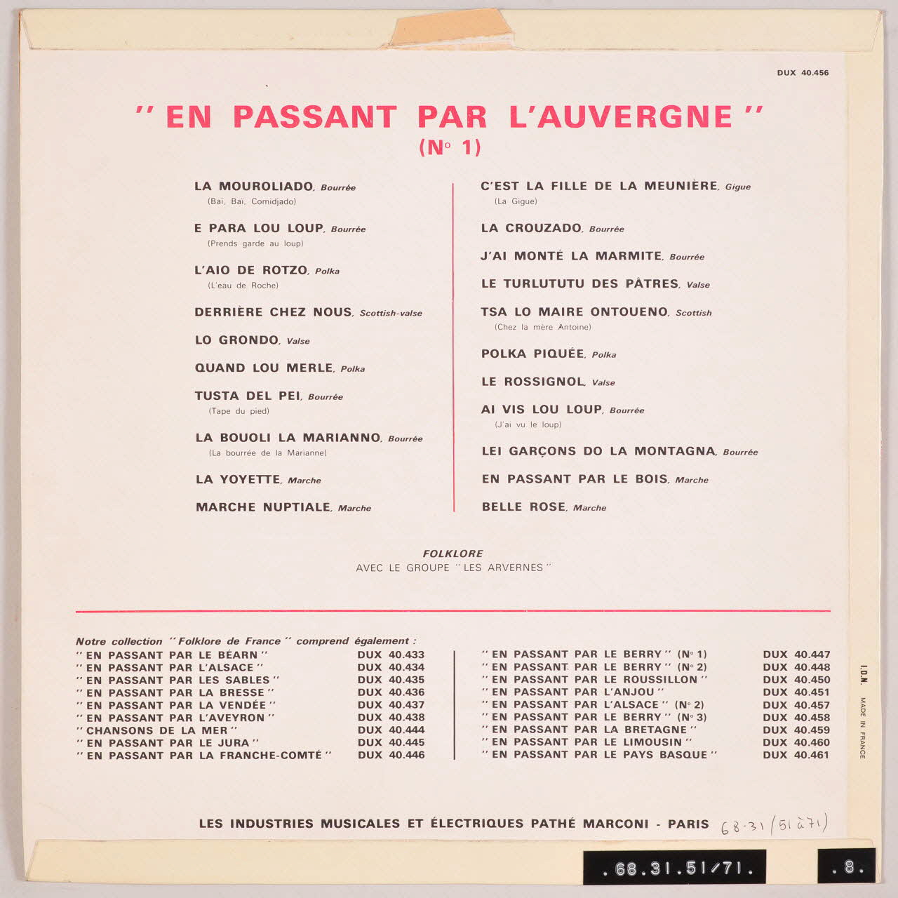 disque 33 tours, En passant par l'Auvergne