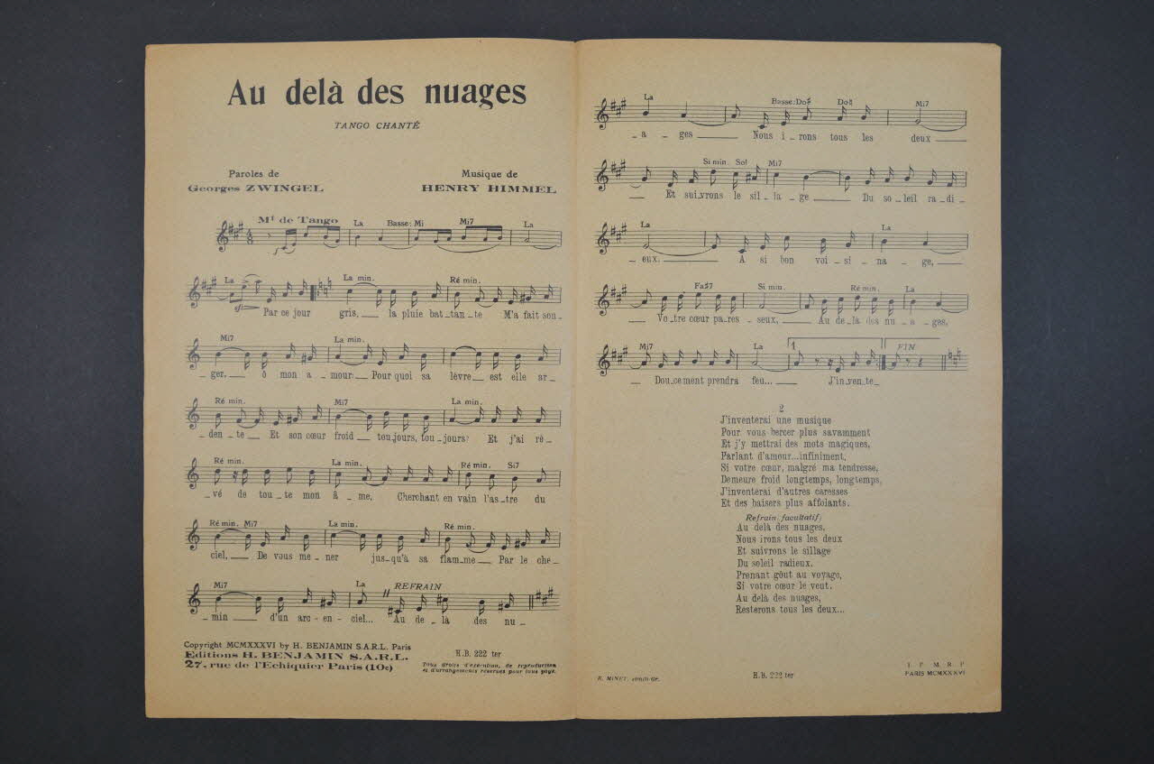 chanson, partition de musique, petit format, Au-delà des nuages