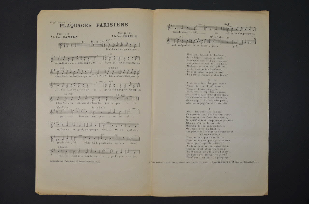 partition de musique, chanson, petit format, Plaquages parisiens