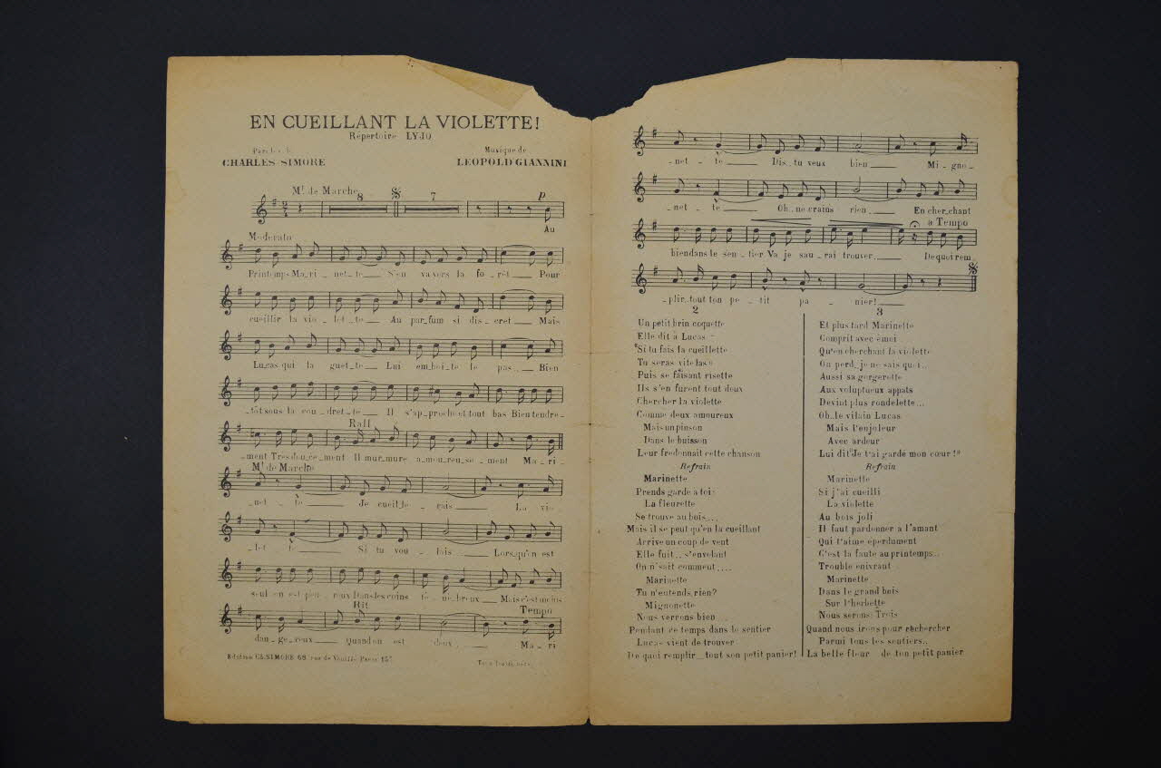 Sur la couverture, le portrait photographique de Lyjo coiffé d'une casquette, dans un ovale. Les inscriptions renseignent le titre de la chanson, le nom des auteurs, de l'artiste et de l'éditeur. A l'intérieur, partition et paroles de la chanson. Au dos, le portrait photographique de Charles Simore, en haut à droite, et liste d'autres partitions de son répertoire publiées par l'éditeur.Décor