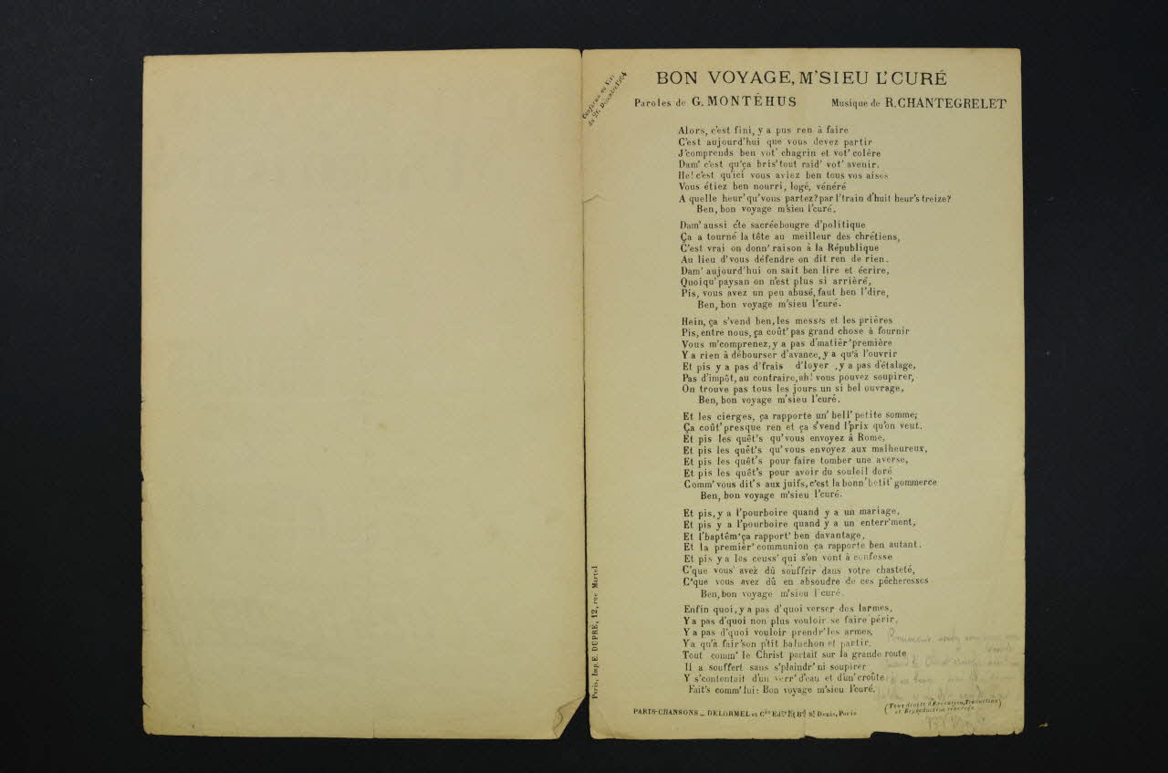 chanson, partition de musique, petit format, Bon voyage M'sieu l'curé