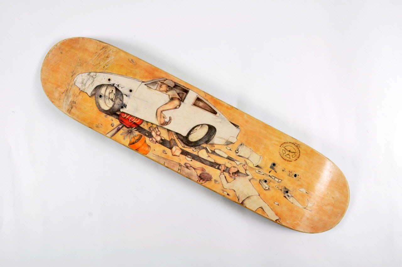 Lieu : FranceDate : 1994 - 1995Planche de skateboard utilisée durant une courte période car présentant un défaut. Planche retournée au distributeur (Vaissette).