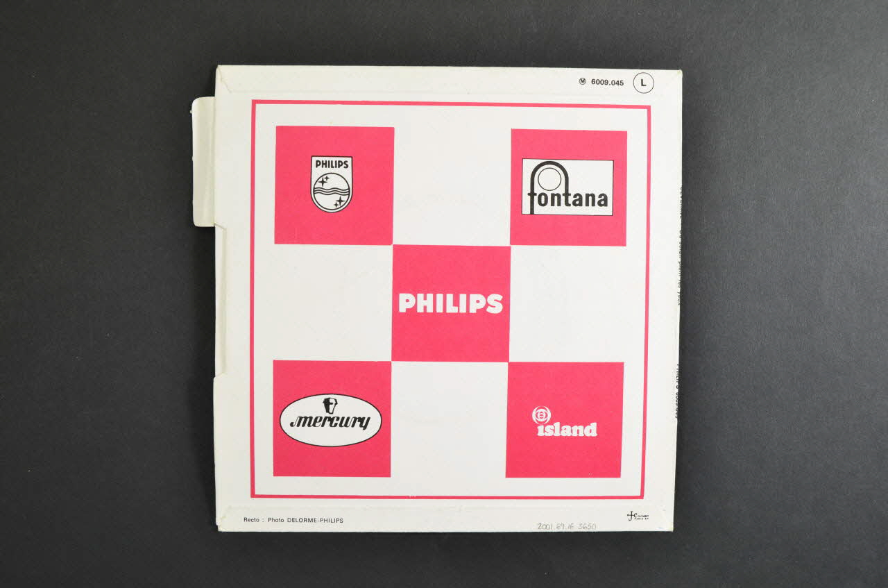 Le recto comporte une photographie noir et blanc, colorée en bleu, de la chanteuse. Le nom des artistes et les titres des chansons sont inscrits en rouge autour de l'image. Le logo de l'éditeur est dans l'angle supérieur droit. Un onglet blanc avec des inscriptions noires est situé le long de la bordure droite. Le verso contient un damier rose et blanc avec des logos de producteurs sur les carrés roses.Matériaux et techniques