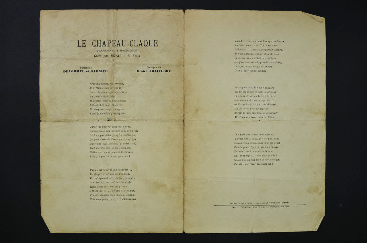 chanson, petit format, partition de musique, Le chapeau-claque